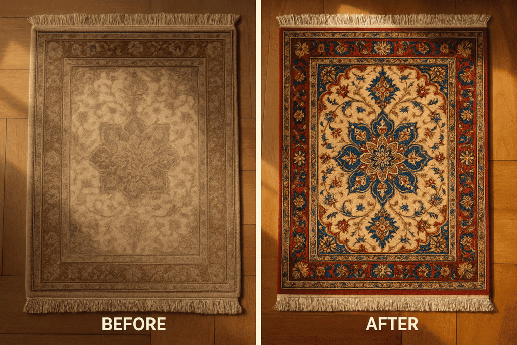 Un professionnel spécialisé dans les tapis orientaux ou en soie utilisera des méthodes adaptées au pH et à la fragilité de la fibre.